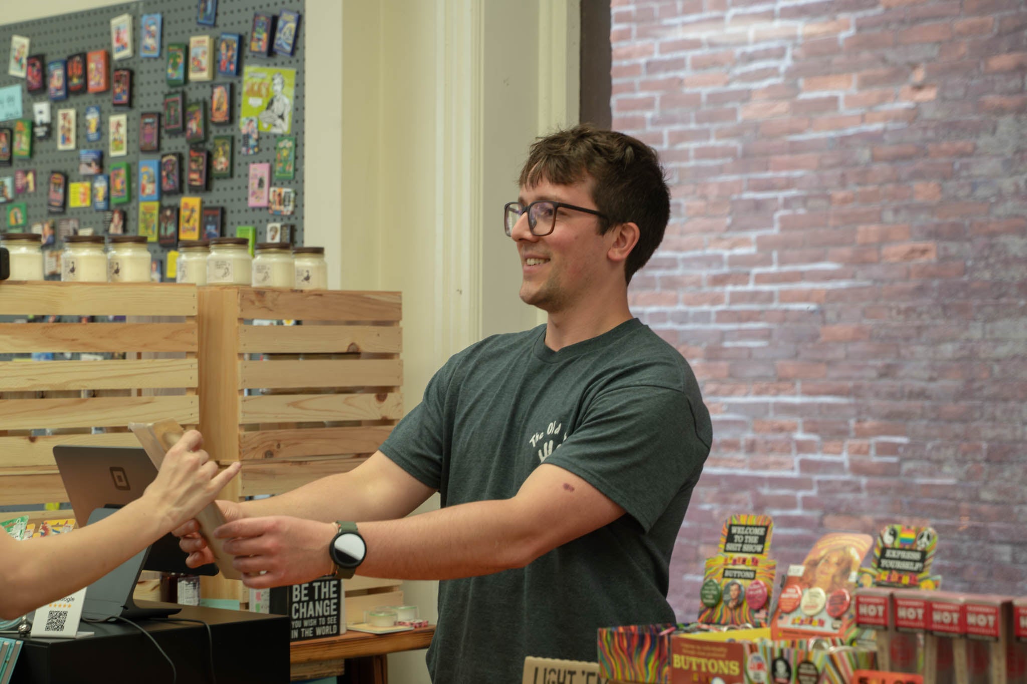 Check this calendar! Evelyn is our store manager but Nate pops in often, and may come in unannounced.