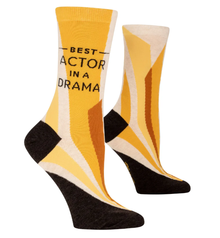Step into the spotlight with these Best Actor In A Drama women's crew socks! Perfect for those who love a little drama (the good kind), these comfy socks keep your feet cozy while you steal every scene—whether on stage, at work, or just lounging at home. Show off your award-worthy style and let your feet do the talking!