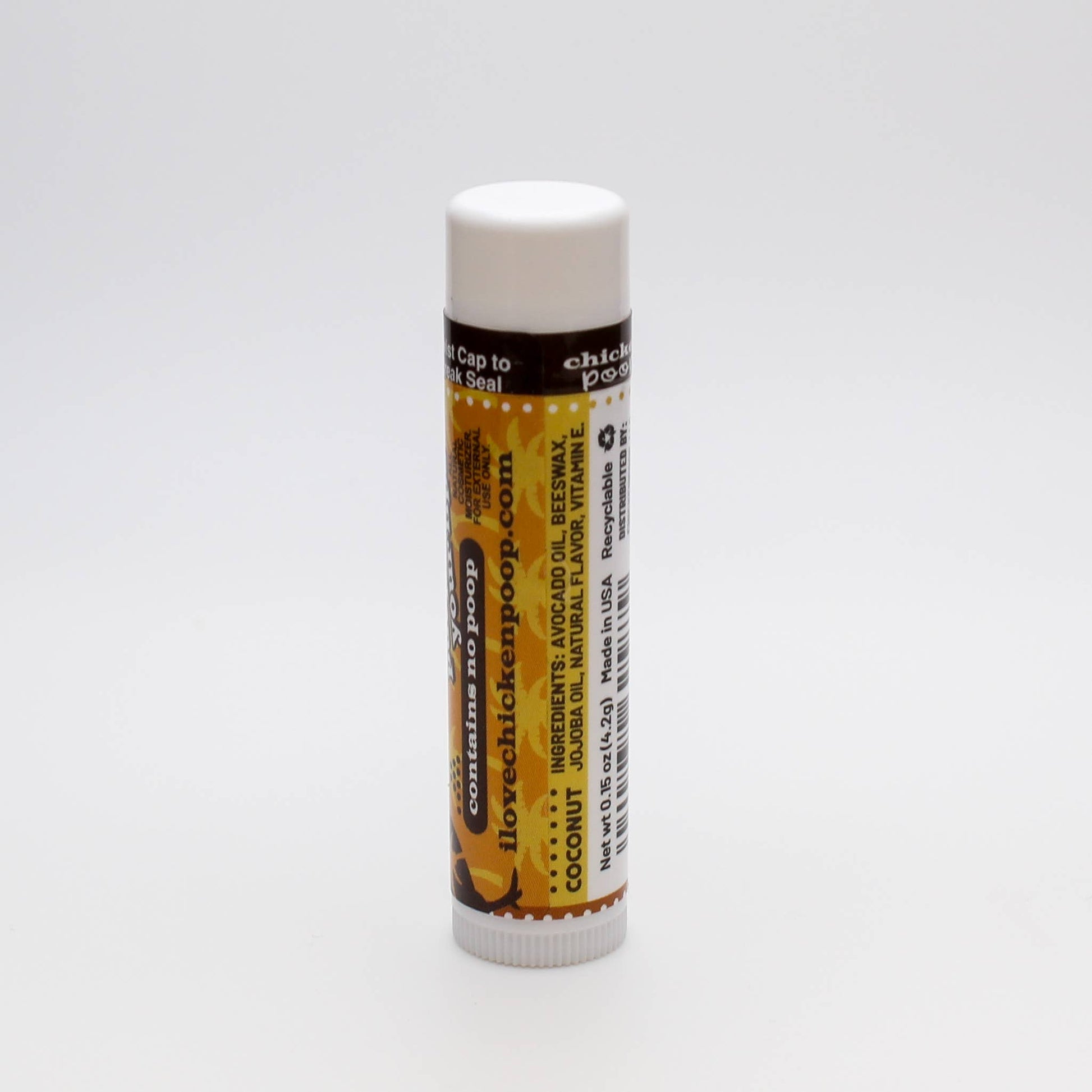 If you adore the beach and cherish summertime, Chicken Poop® COCONUT Lip Balm Lip Junk is your perfect companion. This delightful balm captures the essence of sunny days and evokes memories of carefree moments under the sun. With its smooth application and irresistible coconut aroma, it's a nostalgic nod to those sun-kissed, sunglass-wearing days of yore.