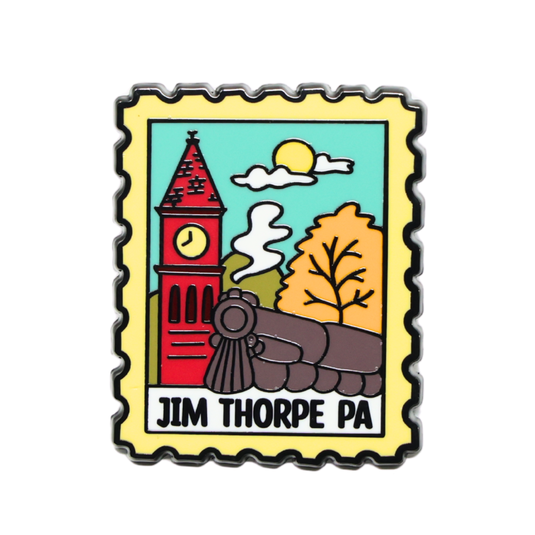 Celebrate legendary vibes with the Jim Thorpe Stamp enamel pin! Shaped like a vintage stamp, this quirky pin adds a playful twist to your collection with a nod to a true icon. Perfect for history buffs with a sense of humor.